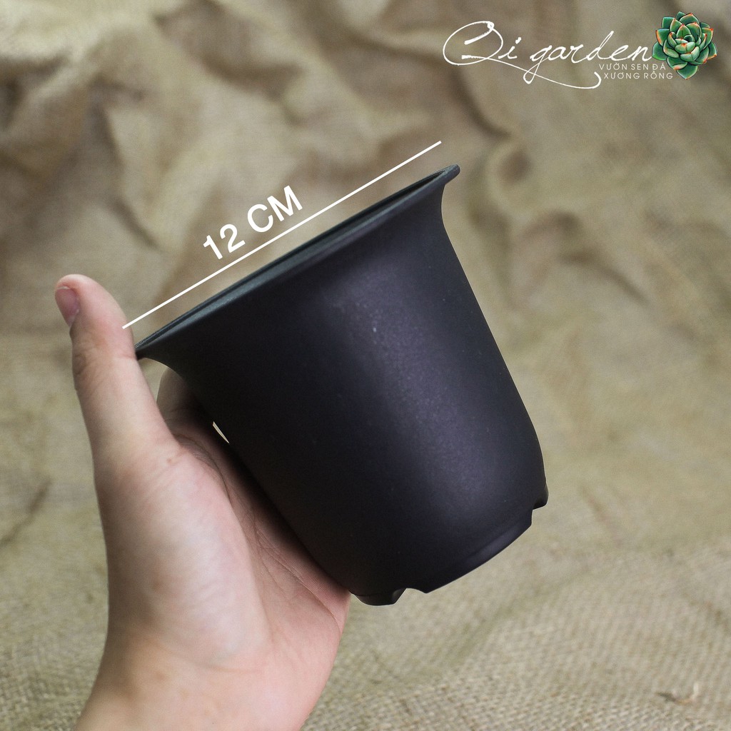 Chậu nhựa tròn đen cao cấp miệng rộng 12cm